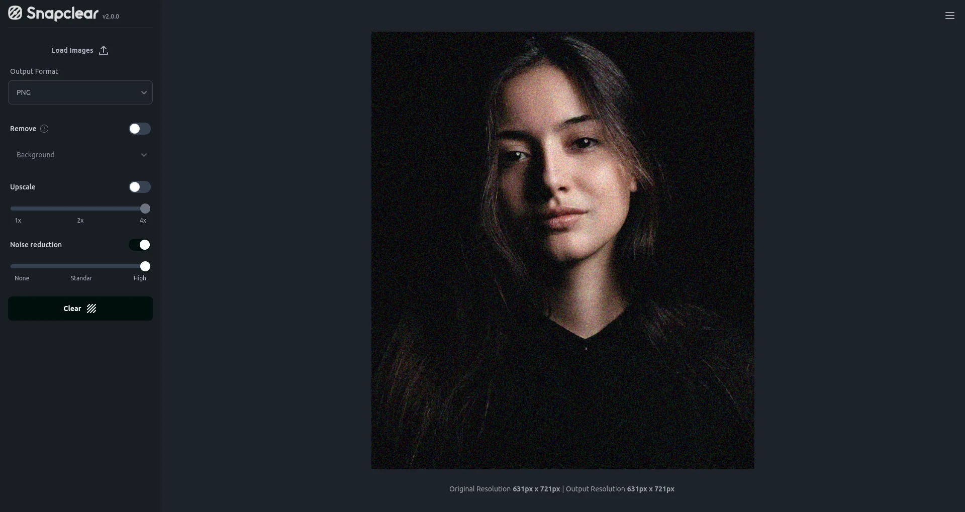Snapclear offers different levels of noise reduction to suit your specific needs. You can adjust the noise reduction level using a slider. Chose between the standard and hight level based on the results you desire. It’s important to strike a balance between reducing noise and preserving important details in your photo.